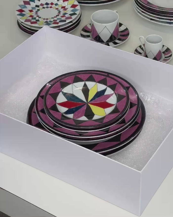 Lançada em dezembro de 2023, nossa Coleção Home Design inclui aparelhos de jantar completos ( prato raso, fundo e sobremesa) que podem ser comprados aos pares: os sets. Você pode formar aparelhos de 2 lugares , 4, 6, 8, ... 12 ...24.....30 lugares.
