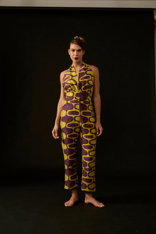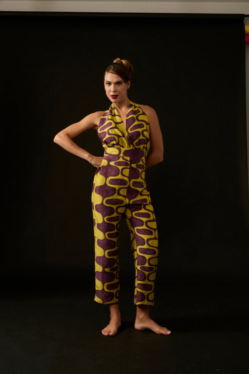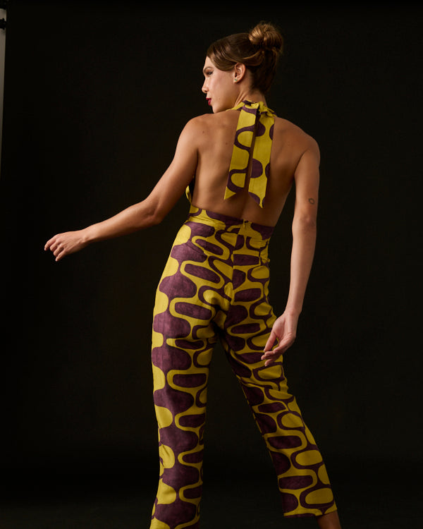 O macacão Vivi veio para brilhar! Modelo frente única, comprimento capri, feito em shantung de seda!