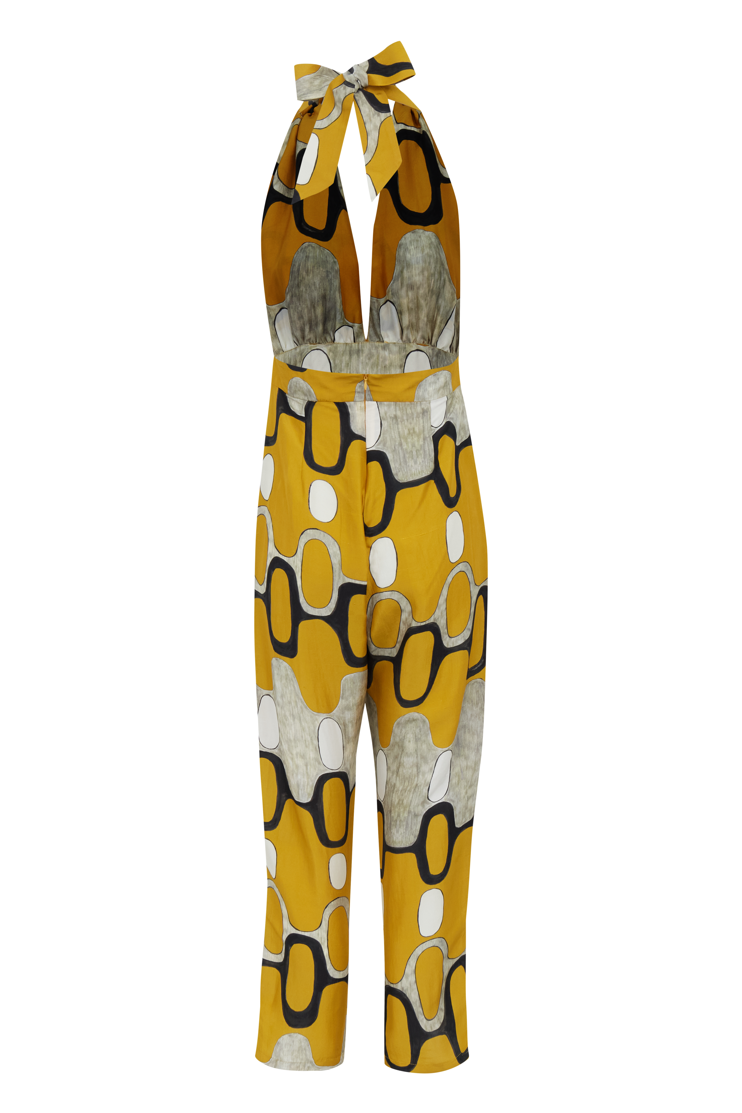 O macacão Vivi veio para brilhar! Modelo frente única, comprimento capri, feito em shantung de seda!